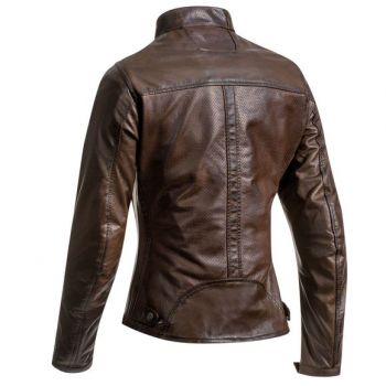 Caractéristiques Techniques :Modèle Femme Cuir Bovin ciré à la main 1-1.1 mm Velours côtelé à l'intérieur du col et des poignets Protections amovibles homologuées CE coudes et épaules Emplacement pour une protection dorsale Renfort aux coudes et aux épaules Aération sous les bras par des oeillets métalliques Ajustement des manches aux poignets...