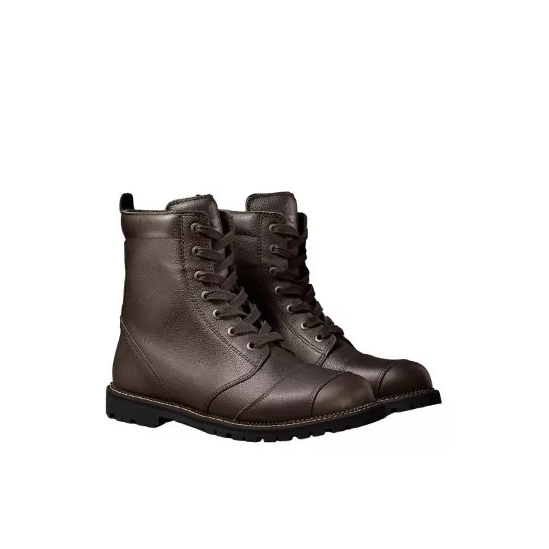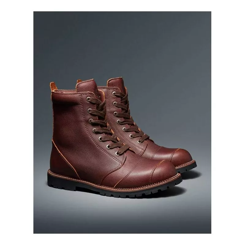 Ces chaussures moto vintage disposent en effet d'une semelle en caoutchouc Vibram qui apporte une bonne flexibilité, de protections aux malléoles des deux côtés et de renforts au talon et sur le devant qui s'intègrent naturellement à son esthétique soignée.