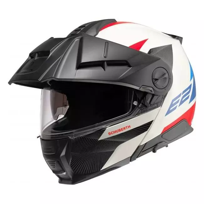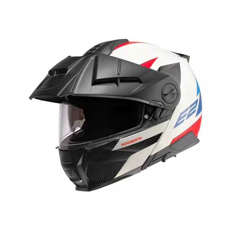 Le Schuberth E2 est la deuxième génération de casques modulable Schuberth Adventure et donc un autre casque de la gamme Schuberth qui a non seulement la double homologation P/J, mais est également conforme à la nouvelle norme ECE-R 22.06. Le Schuberth E2 est le mélange parfait entre le confort de la célèbre série "C" et le look agressif d'un casque tout-terrain.