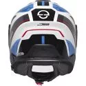 Pour une sécurité accrue, des autocollants et zones réfléchissantes sont placés sur le pare-nuque et le dessus de la visière. La fermeture de la jugulaire est assurée par une boucle micrométrique réglable des deux côtés, avec possibilité de décalage.