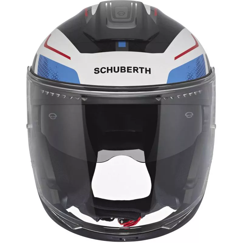 Le programme "SCHUBERTH Individual Program" permet un ajustement personnalisé. La mentonnière améliorée offre un meilleur confort au niveau de la gorge et peut être retirée pour une protection supplémentaire. Le pare-nuque facilite l'entretien des doublures et améliore les performances aéro-acoustiques.