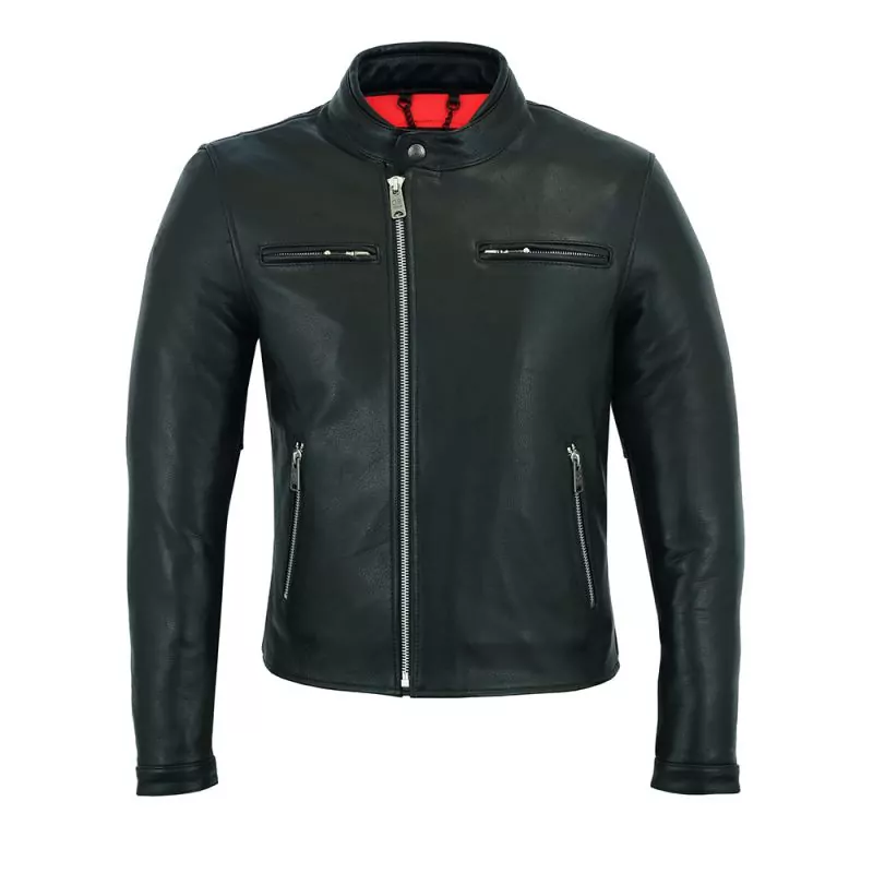 Vintage Motors präsentiert: Modell: Mann Slim-Fit Kragen schnappt < / span> Langer Ärmel mit geknöpften Manschetten und zip asymmetrisches Reißverschluss Verstellbare Taille mit Druckknöpfen < / span> 2 Seitentaschen mit RV 2 Reißverschluss-Brusttaschen Air-Mesh-Fixes Futter, mit zwei Reißverschlusstaschen versehen herausnehmbare Protektoren an Schultern und Ellbogen CE-zertifiziert enthalten Tasche für Rückenprotektor (nicht MwSt) Optimale Belüftung Komfortable und robuster Zusammensetzungen : Leder