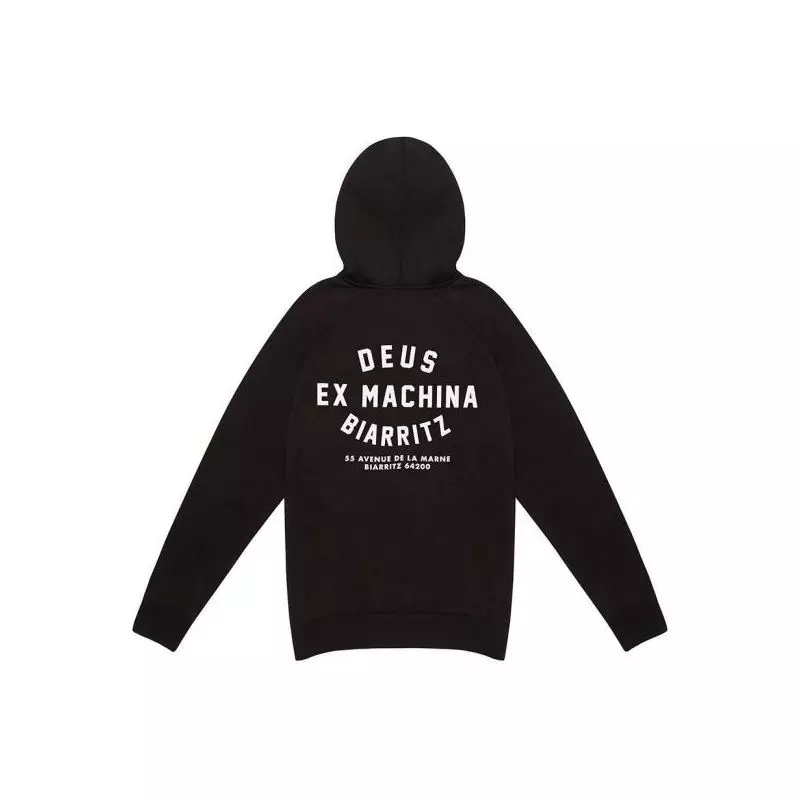 El sudor cubierta de corte corte regular con la dirección de Deus templo Bairritz en Francia impreso en la parte posterior y el logotipo de pecho en algodón peinado. Hecho del paño grueso y suave