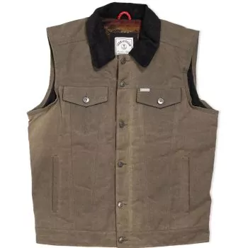 Description Le Highway Vest vante une combinaison d’une silhouette épurée. Avec ses matériaux utilitaires, cet objet fusionne la robustesse de la rue avec une fonctionnalité d'autoroute tout droit sortie d'Easy Rider en 69. Fabriqué avec un extérieur en toile de canard robuste de 12 oz et une doublure en flanelle 100 % coton super douce, la durabilité et...