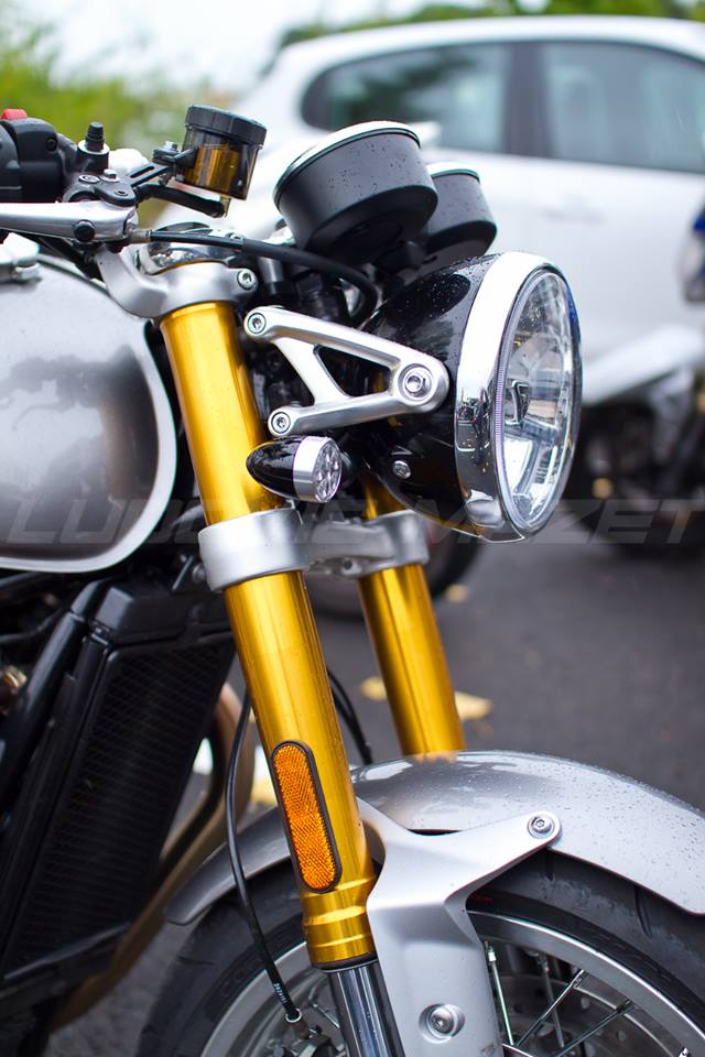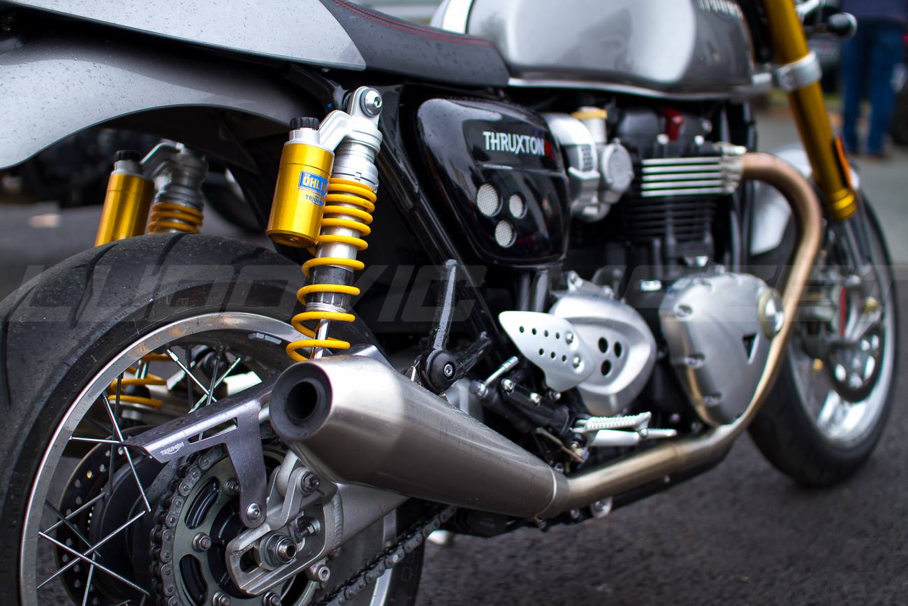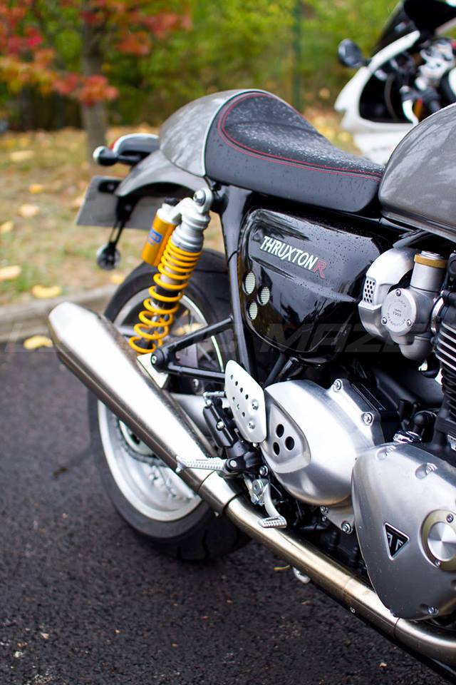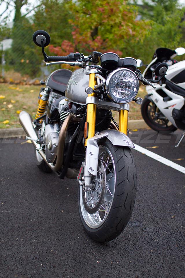 Rendez-vous pris chez Triumph Lyon pour cet essai du tout nouveau Thruxton 1200 R. L’ancien modèle était déjà très chouette, voici que ce modèle 2016 monte encore d’un cran en terme de look. Une partie cycle qui n’a rien à envier aux dernières sportives. Un gros 1200 bicylindre annoncé à un peu moins de 100 chevaux, ça promet du couple !