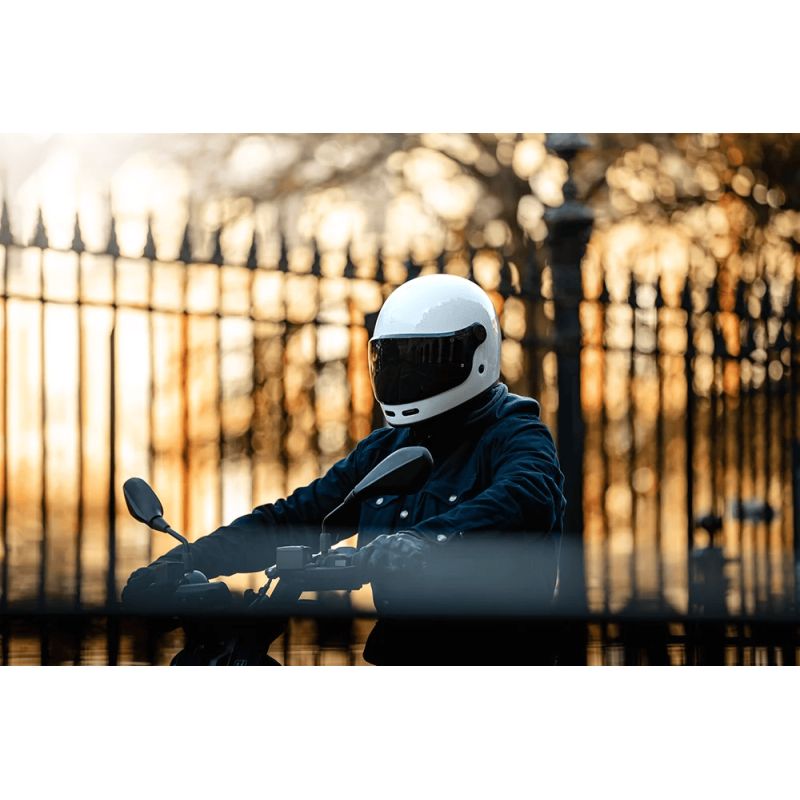 Inspirado pelos capacetes integrais dos anos 60, o Full Moon 2 é projetado com um casco de fibra de vidro e uma chinelo fino e baixo, oferecendo um campo de visão excepcionalmente amplo, uma característica particularmente apreciada pelos utilizadores de duas rodas e especialmente para a condução urbana.