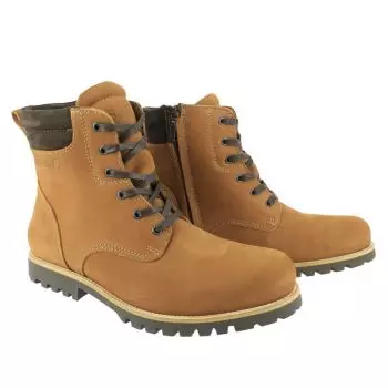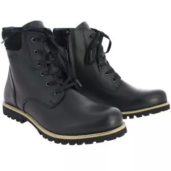Especificaēões: Botas em couro cheio de grćos Certified CE EN 13634 impermeįvel e respirįvel membrana reforēo de proteēćo do maléolo encerramento e rendas zip lado < l/> selo de arranque sob o fecho de correr reforēado calcanhar de apoio borracha natural sola sola moldada com a montagem soldada