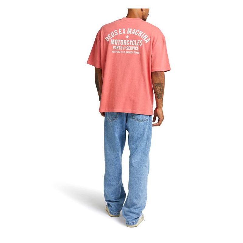 Trouver le t-shirt parfait peut être un défi, mais ce t-shirt Deus Ex Machina Oversized Tokyo Rouge Rose est parfait. Il est oversize sans vous encombrer. Fabriqué en jersey de coton 280 g/m², il arbore des imprimés simples et efficaces sur le devant et le dos. Conçu et testé à la Deus House of Simple Pleasures, Camperdown, Sydney.